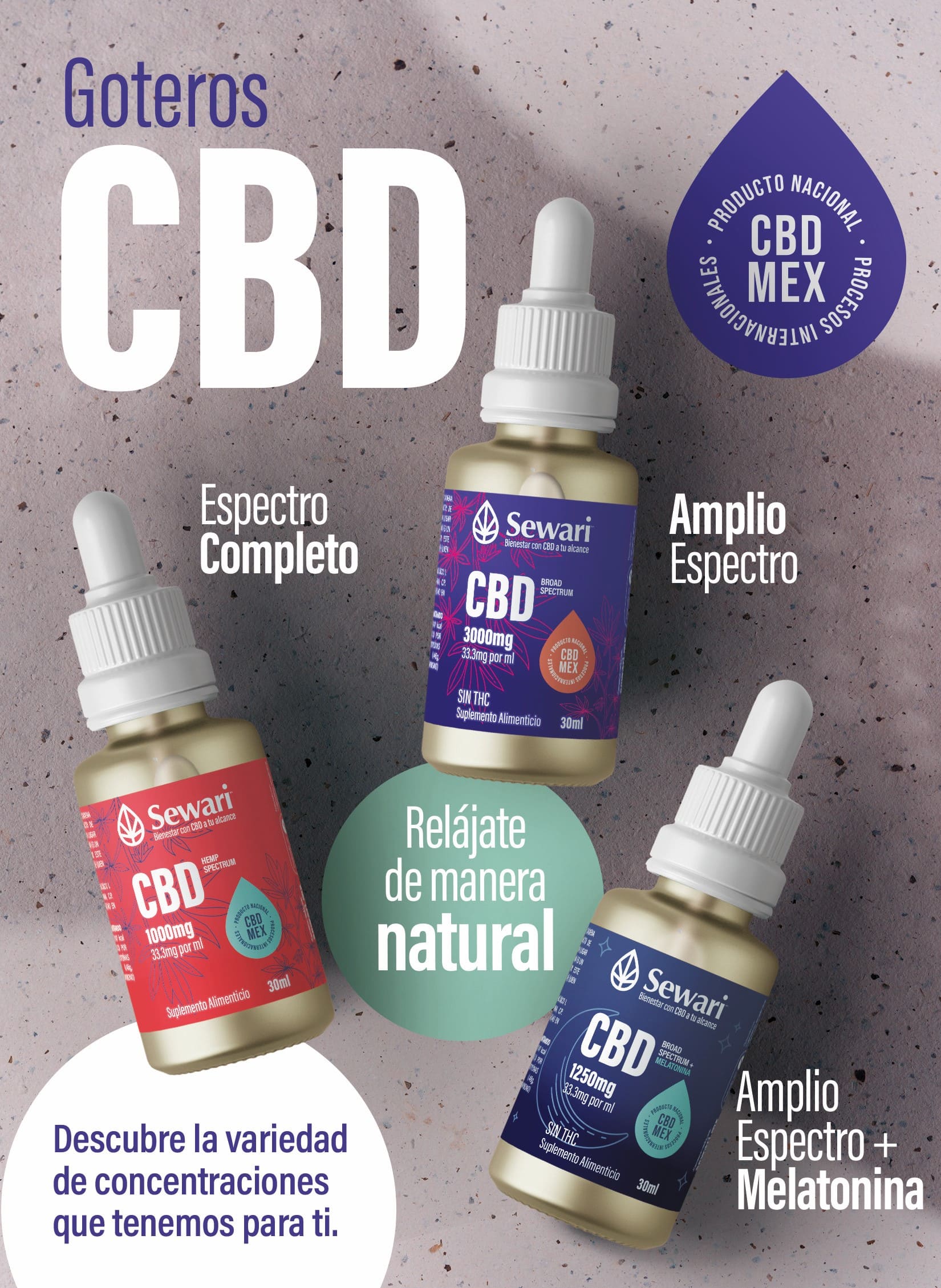 Productos formulados con cáñamo cultivado y extraído en Estados Unidos.